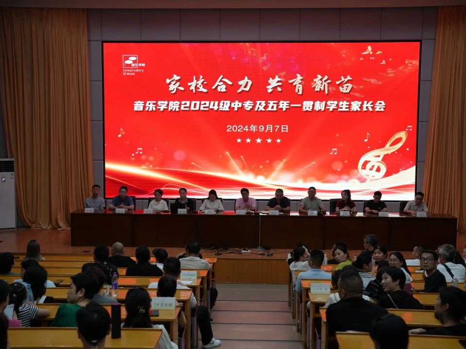 为进一步加强家校联动,更好地开展家校沟通。9月7日,学院组织了“家校合力 共育新苗”主题家长会。音乐学院班子、办公室主任、教研室主任、辅导员、班主任和全体新生家长参加,全方位向家长介绍音乐学院的教学管理情况。